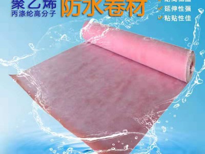 高分子聚乙烯丙(滌)綸防水卷材是采用聚乙烯、高強(qiáng)丙(滌)綸無紡布、紫外線隔光劑、抗老化劑等高分子原料,由自動(dòng)化生產(chǎn)線一次性擠出成型加工制成。卷材中間層是防水層和防老化層,上下兩面是增強(qiáng)粘結(jié)層,牢固、可靠、無翹邊、無空鼓、雙層防水,是一種新型的防水材料。